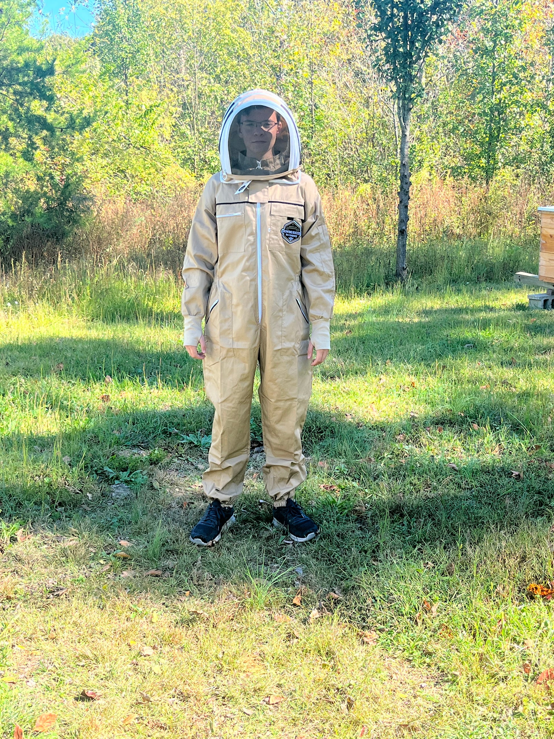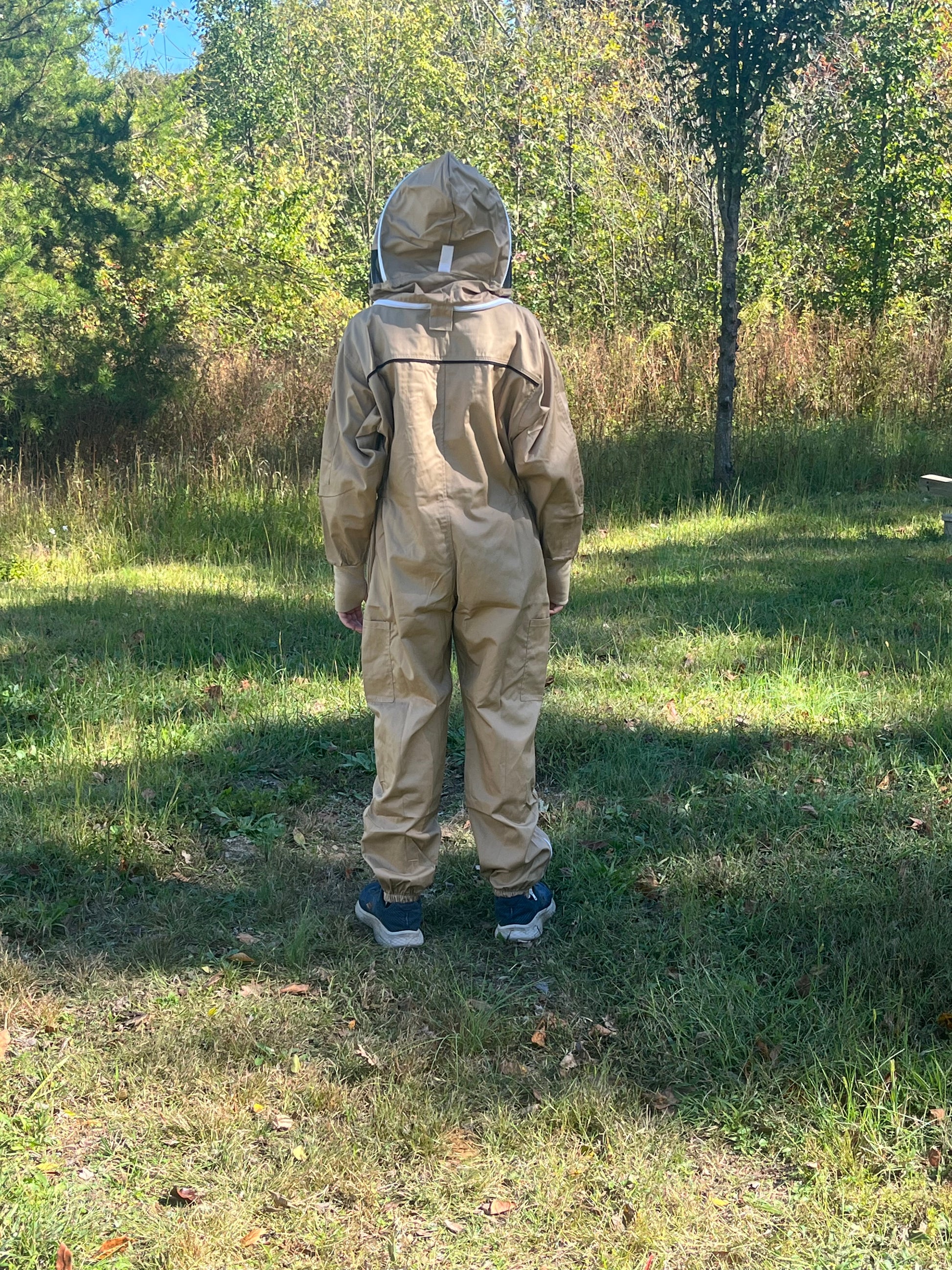 This Premium Cotton Beige Suit is lightweight to keep you cool while checking your bees! This suit features easy slide YKK Vislon zippers and soft/wide cotton cuffs with a thumb hole so the sleeves won't ride up while putting on your gloves. It also has four front pockets, zippered/vented armpit, elastic at the waist, elastic at the ankle, elastic boot band, and a zippered leg opening. Available in sizes X-Small through 4X-Large. See inset for sizing chart (customers say it runs a bit small).