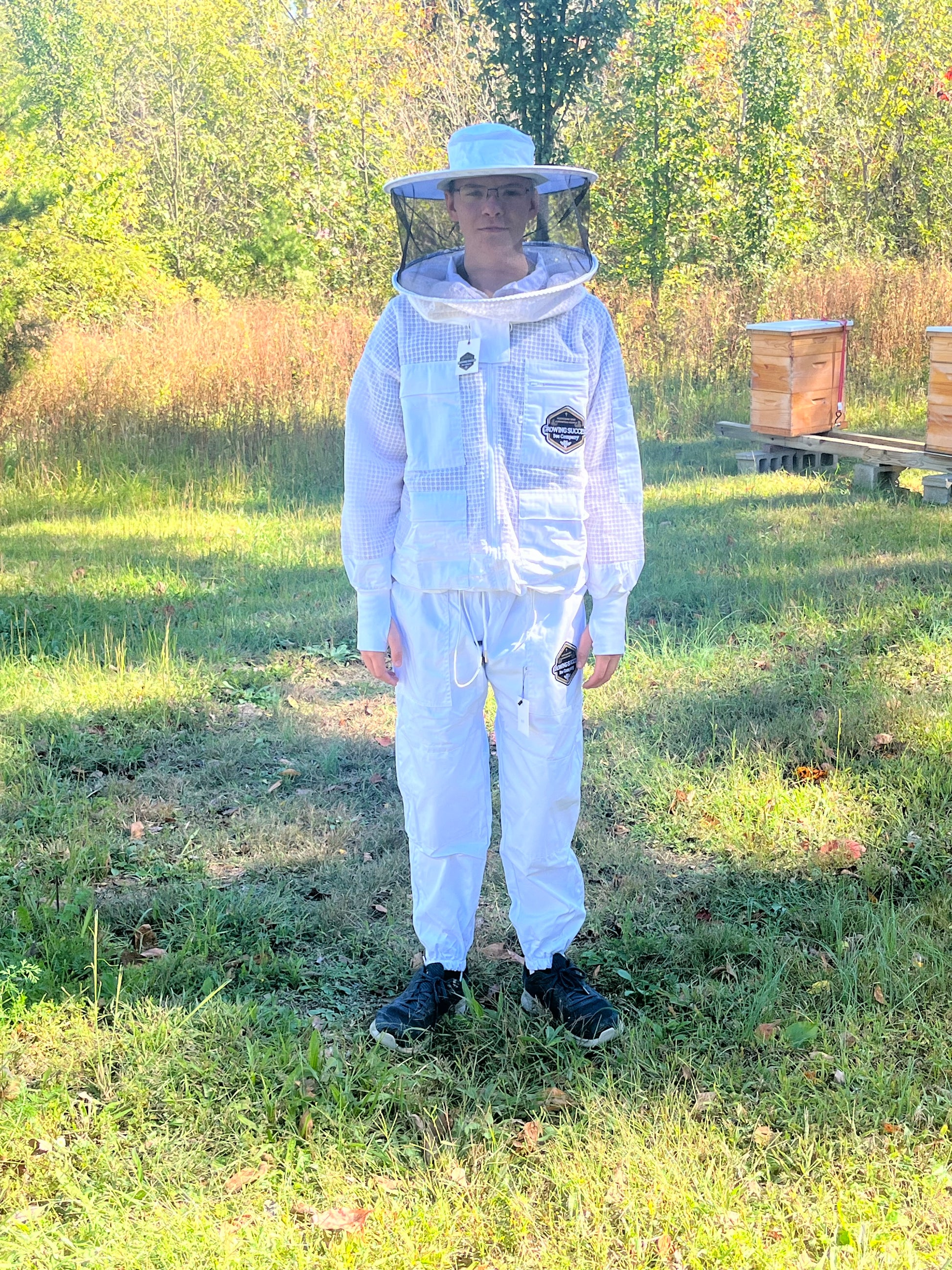This Premium Fully Ventilated Jacket is designed to keep you cooler while checking your bees! It is comprised of three layers of vented material to protect you from stings while keeping you cool. The jacket features soft/wide cotton cuffs with a thumb hold so the sleeves won't ride up while putting on your gloves. It also has four front pockets, a pocket on the sleeve, and elastic cinch cords at the waist. Available in sizes X-Small through 2X-Large.